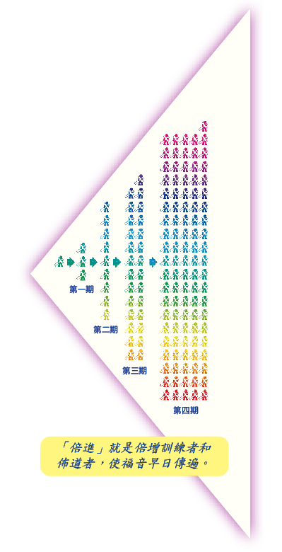 不僅裝備信徒藉個人佈道傳揚福音(第一階段訓練材料),更要幫助他們栽培初信(栽培材料),最終訓練他們成為門徒(高階段訓練材料)。